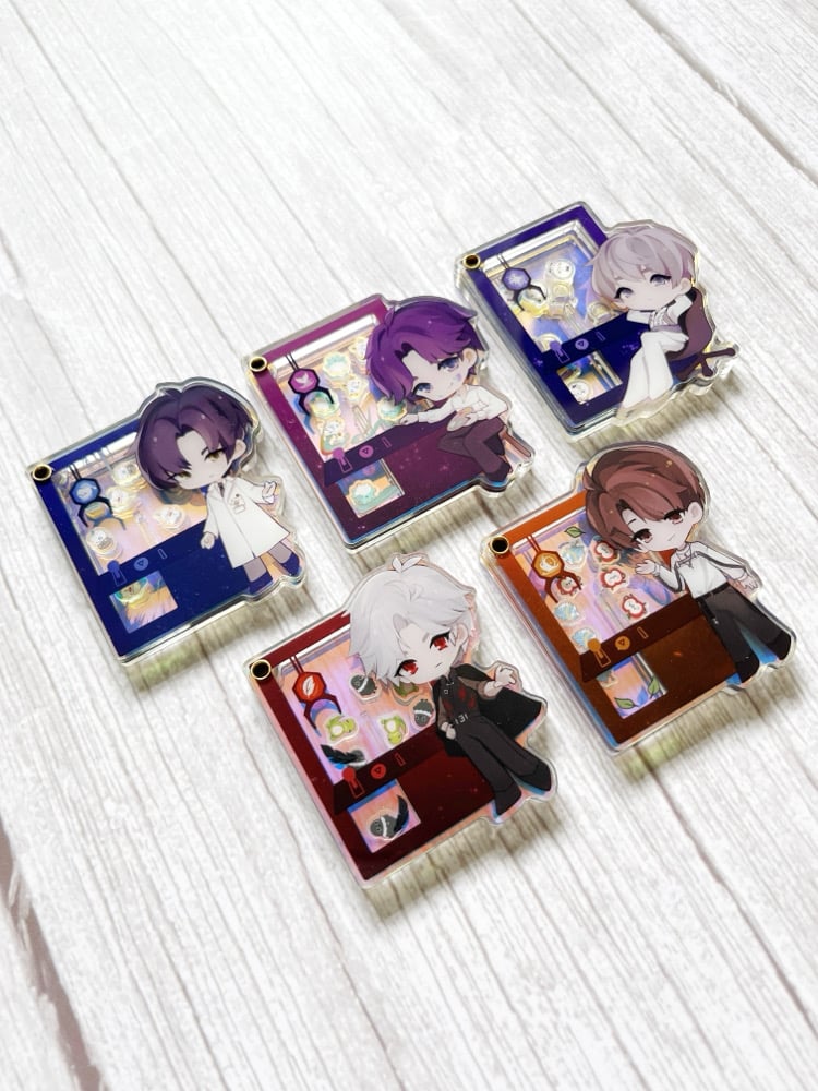 DETAILS ✦ Approx 2.5 inches ✦ Small inside pieces that move when shaken and can be taken out ✦ Charm has pivot and can be opened ✦ Double sided printing with iridescent holo acrylic back piece ✦ Comes with gold ball and clasp chain